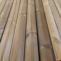 Dzięki wysuszeniu w procesie termowania, thermo sosna zyskuje stabilność materiału. Oznacza to, że nie będzie zmieniać rozmiaru pod wpływem temperatury. Ten materiał idealnie nadaje się na deskę tarasową, elewacyjną, do produkcji saun ogrodowych oraz do wykończeń.